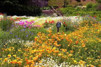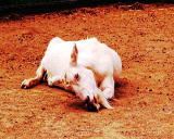 花の咲き乱れる園でポニーと山羊がのぉ〜んびり。