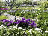 アヤメ・カキツバタ等28万本、東洋一のハナショウブ400種類150本、園内は花でいっぱい。
