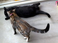 アタシ達は、ベランダで毛づくろいで忙しいの。