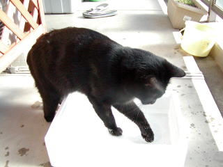 アタシ、水遊びが大好きなのヨ。 キッチンの洗い桶で遊んでいると、お母さんがすぐ怒る。