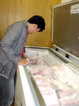 まぐろ専門店「丸住」でお目当てのマグロをゲット!!大きな冷凍庫の中には、切り分けられた