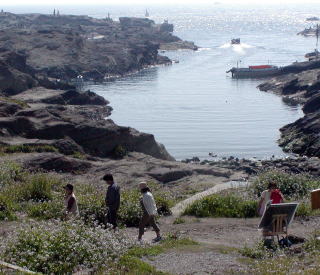おすすめスポット。目の前の磯は、釣りやバーベキューを楽しむ人でいっぱい。